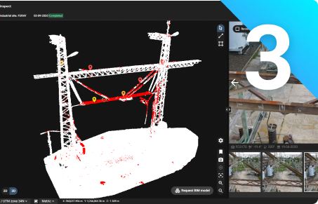 Visualice emplazamientos y activos en 3D para inspeccionarlos y analizarlos desde cualquier lugar. Cree un registro fiable.